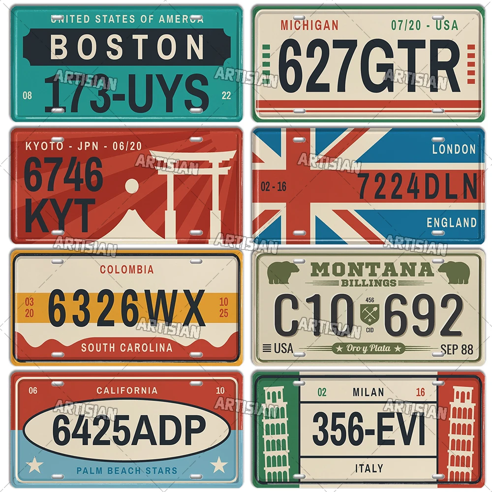 ARTYSIAN USA License Plate US Car Registration State Number Plate America Decorative Metal Sign Wall Industrial Decor Garage Bar