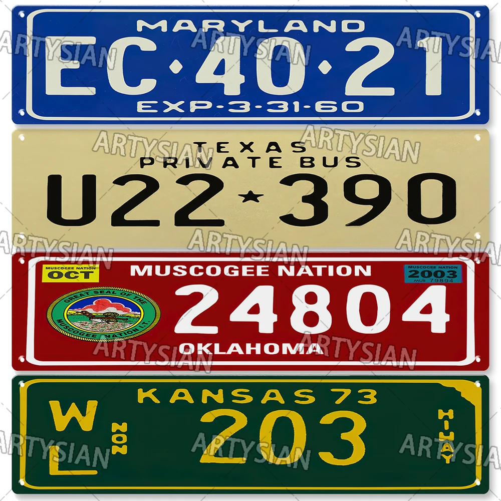US State License Plate Old Classic Truck Vehicle Trailer Tractor Car Number Plate Metal Tin Sign Wall Decor Indiana Kansas MASS