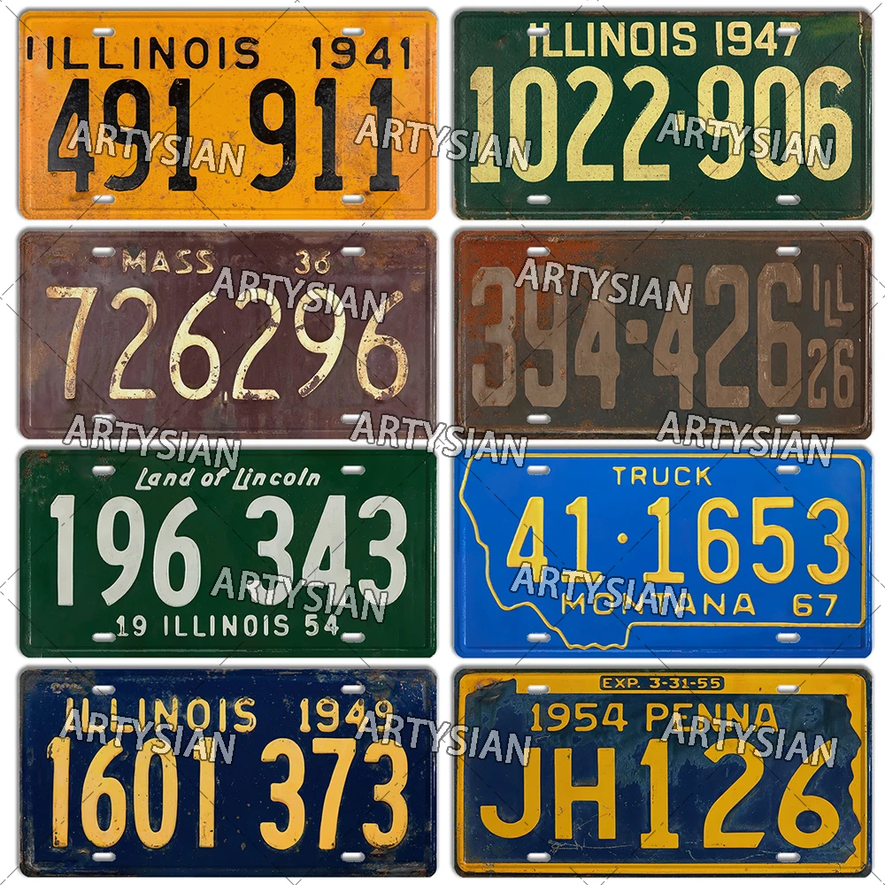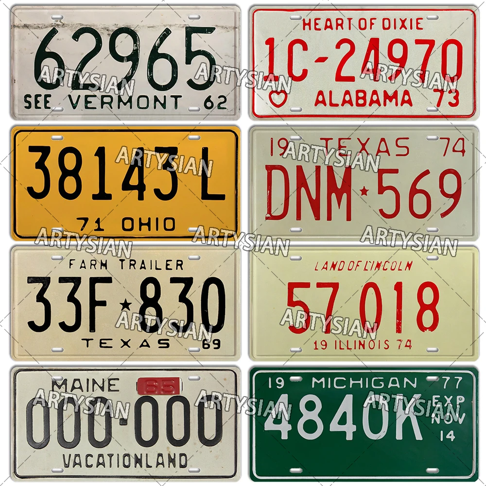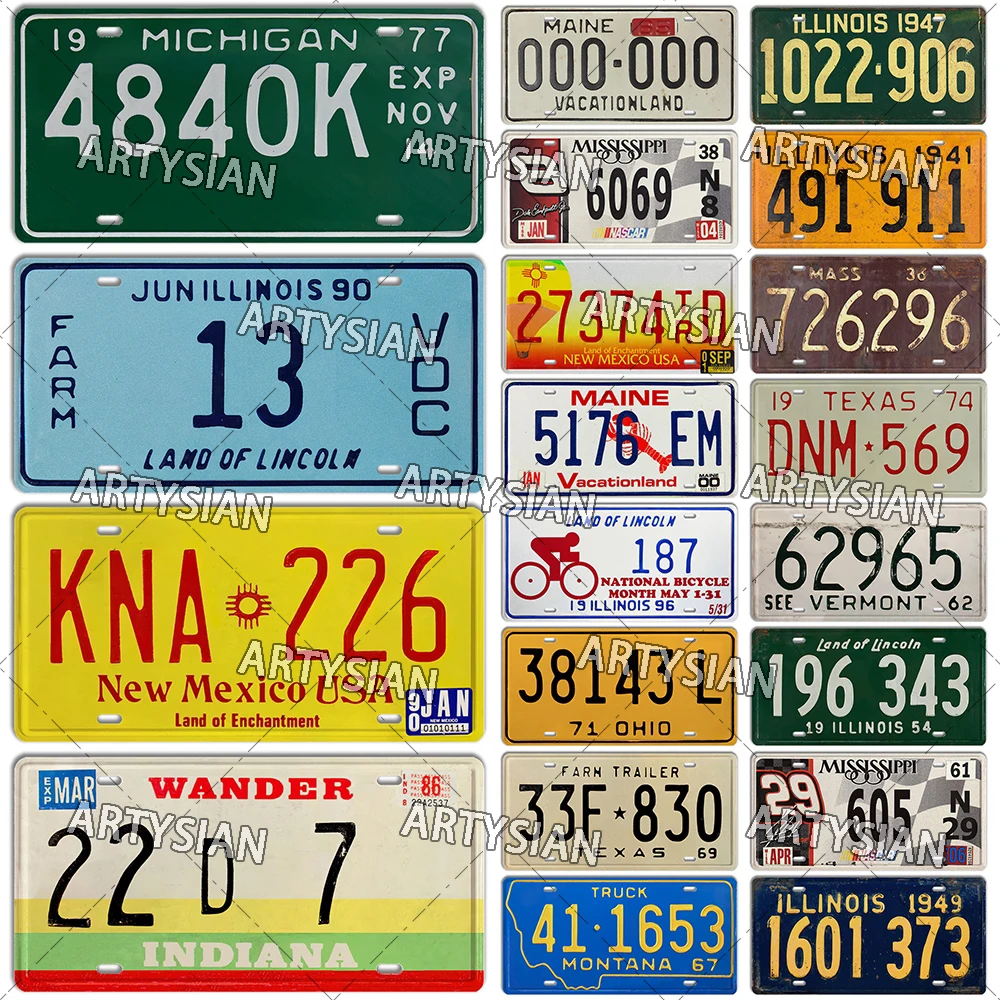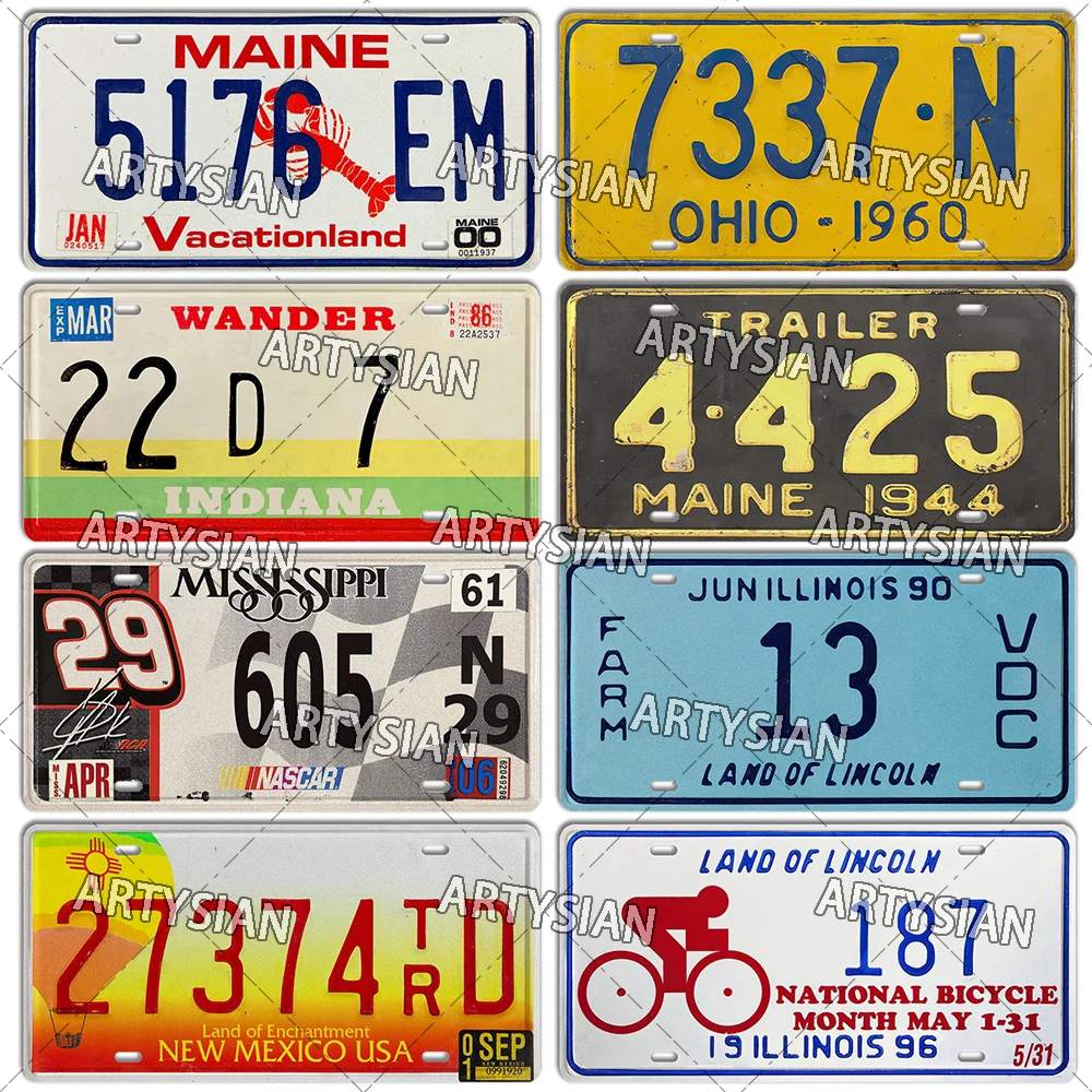 US State License Plate Truck Vehicle Trailer Tractor CAR Decorative Metal Plaque Wall Industrial Decor Texas Illinois MAINE