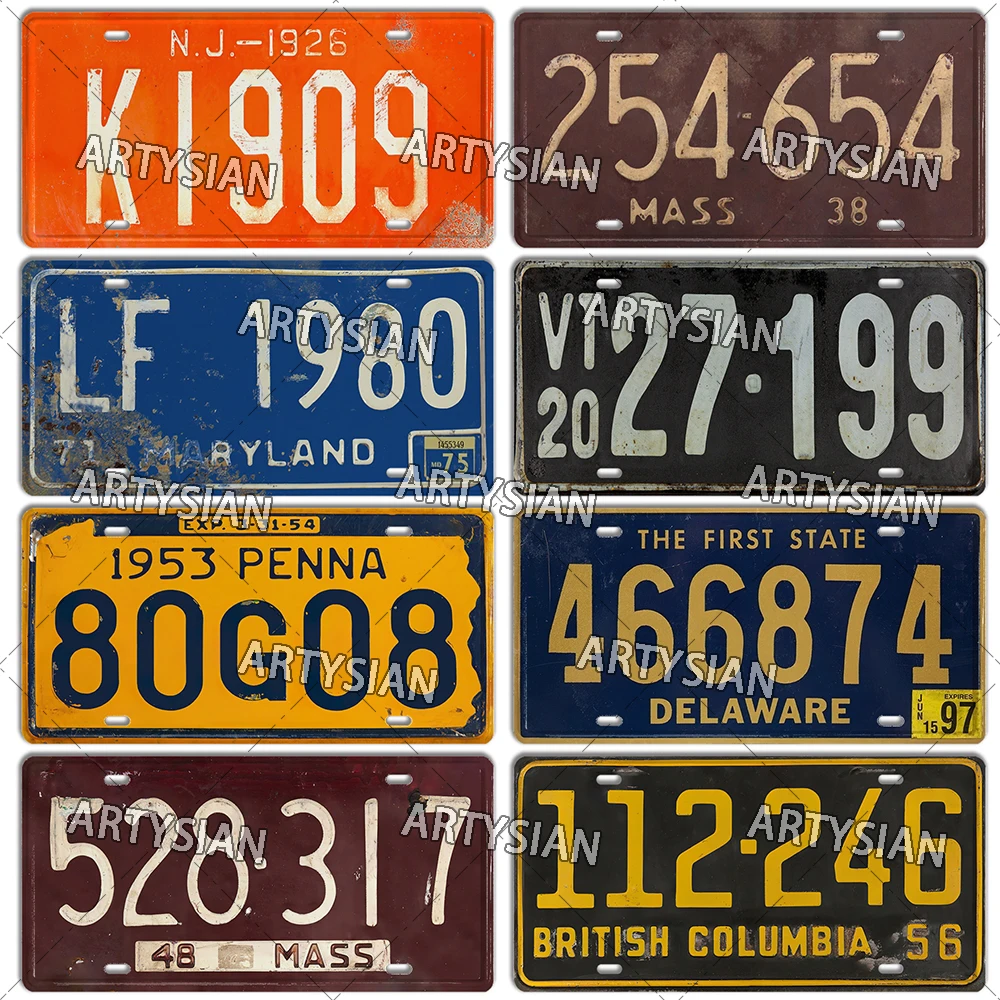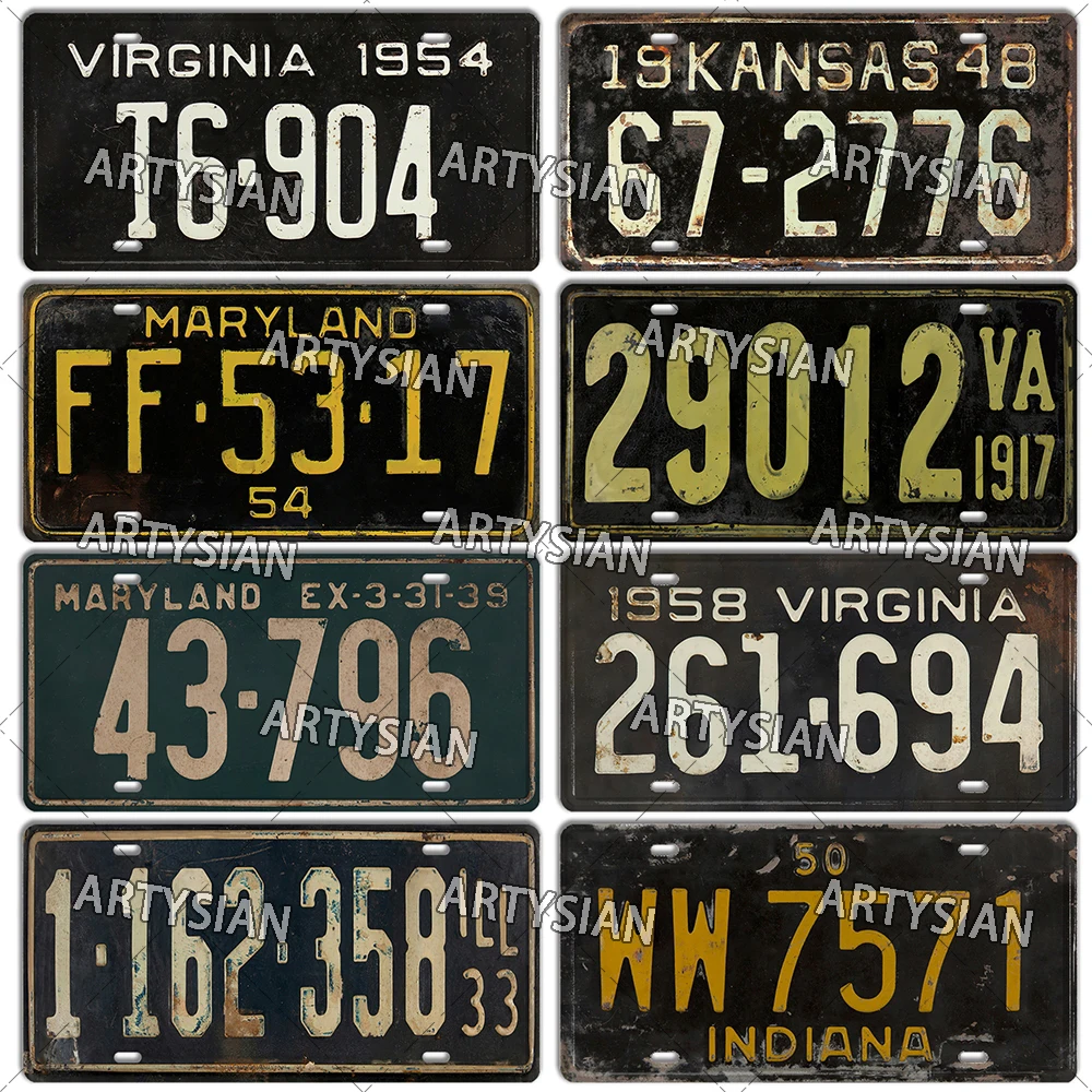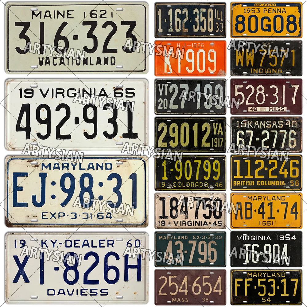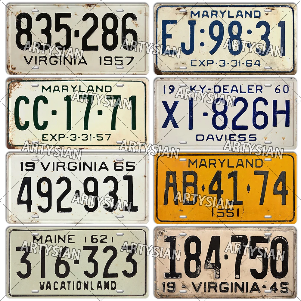 US State Vintage License Plate Vermont New Jersey Maine Virginia Illinois Maryland Kentucky Number Plate Truck Metal Sign