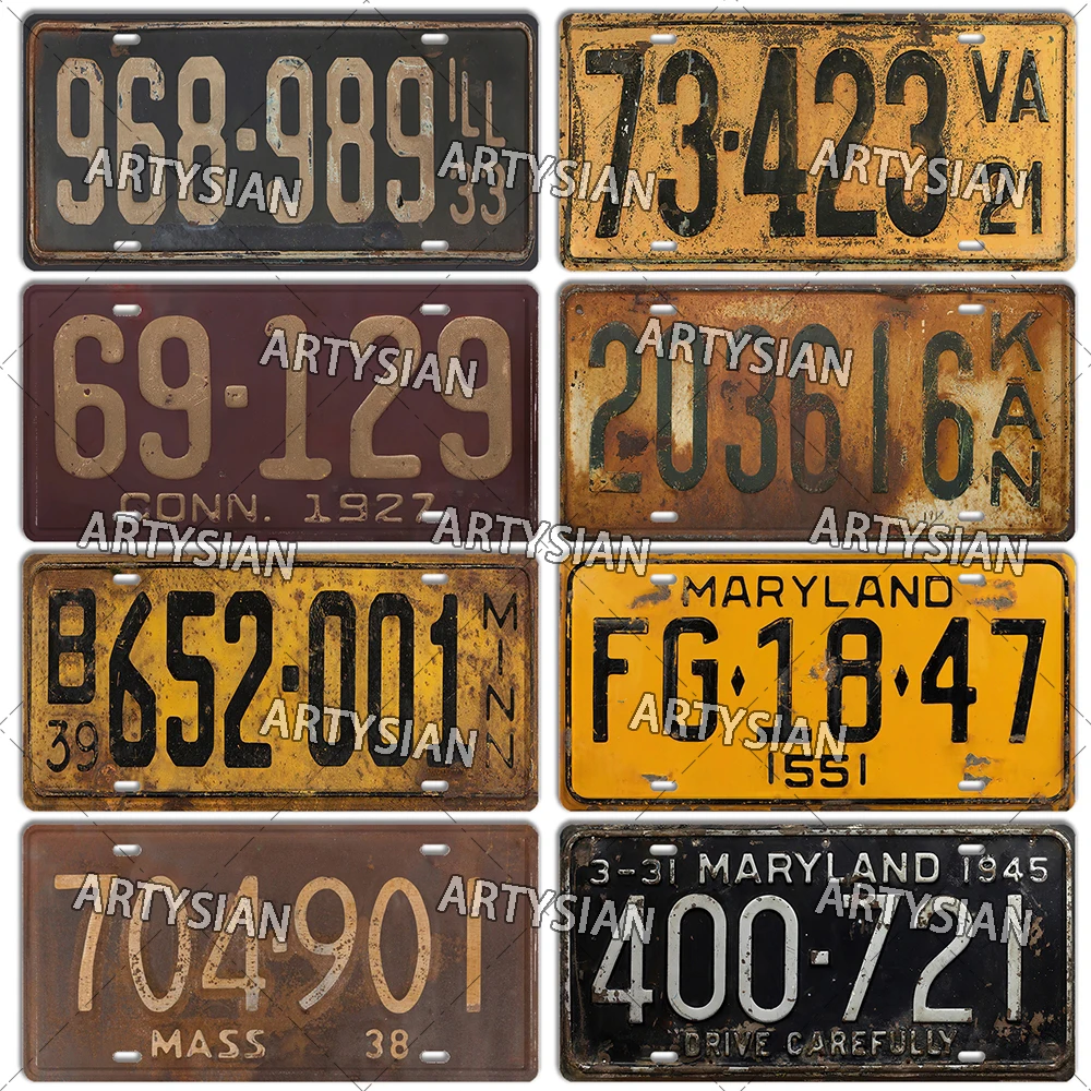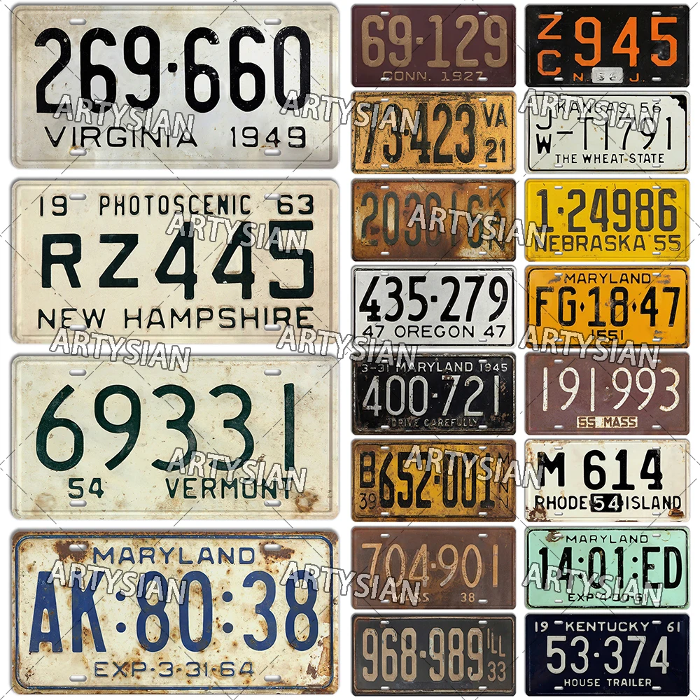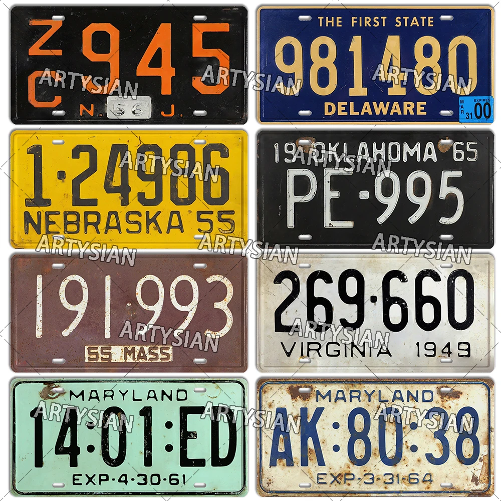 US Vintage License Plate Delaware Connecticut New Hampshire Oklahoma Illinois Virginia Maryland Minnesota Truck Metal Plaque